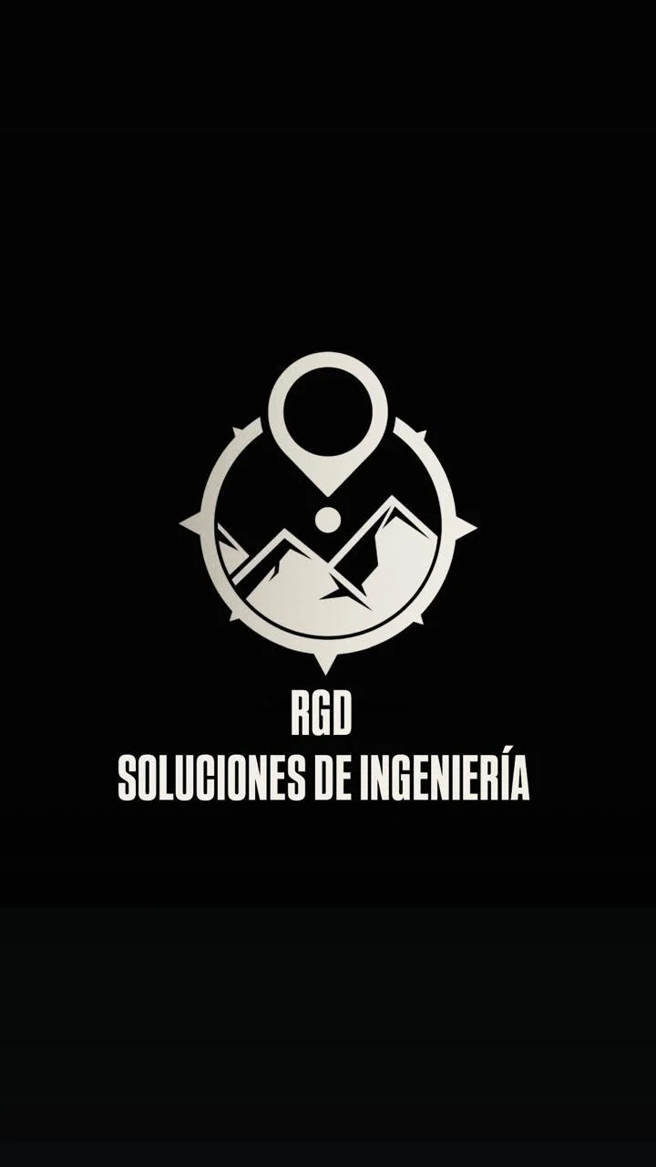Logo con estrellas, montañas y una ubicación, con texto que dice 'RGD Soluciones de Ingeniería' en fondo negro.